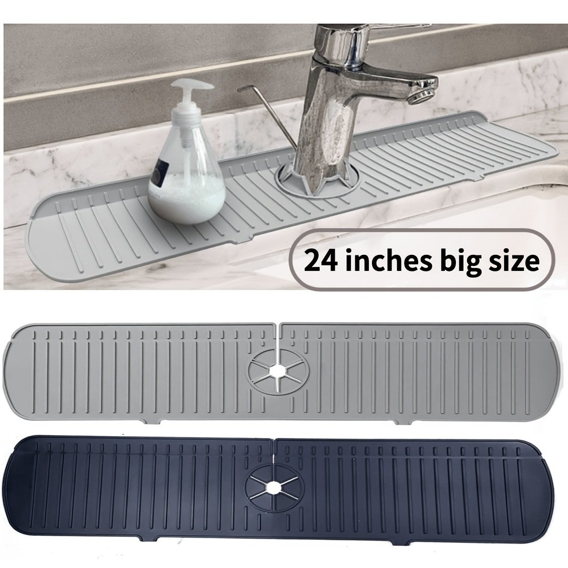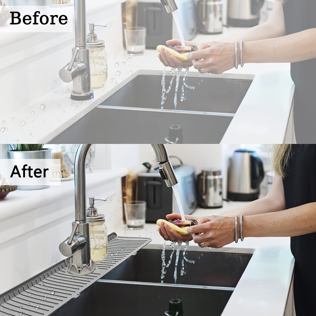 Home > 1pc Faucet Sink Splash Guard Mat, Silicone Faucet Water Catcher Mat Cover, Sink Draining Pad Behind Faucet, Gray Black Silicone Drying Mat For Bathroo