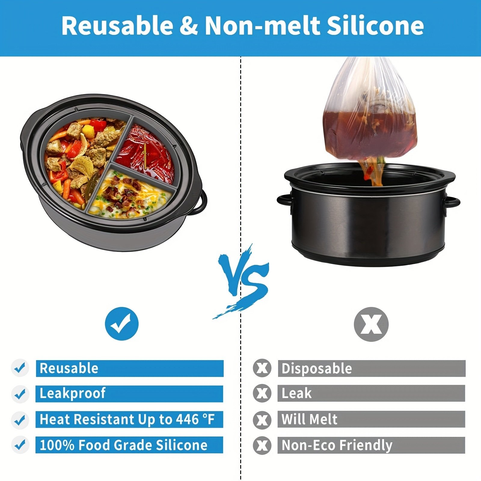 Home > 1pc Slow Cooker Divider Liner Fit 6 QT Crockpot; Reusable & Leakproof Silicone Crockpot Divider; Dishwasher Safe Cooking Liner For 6 Quart Pot