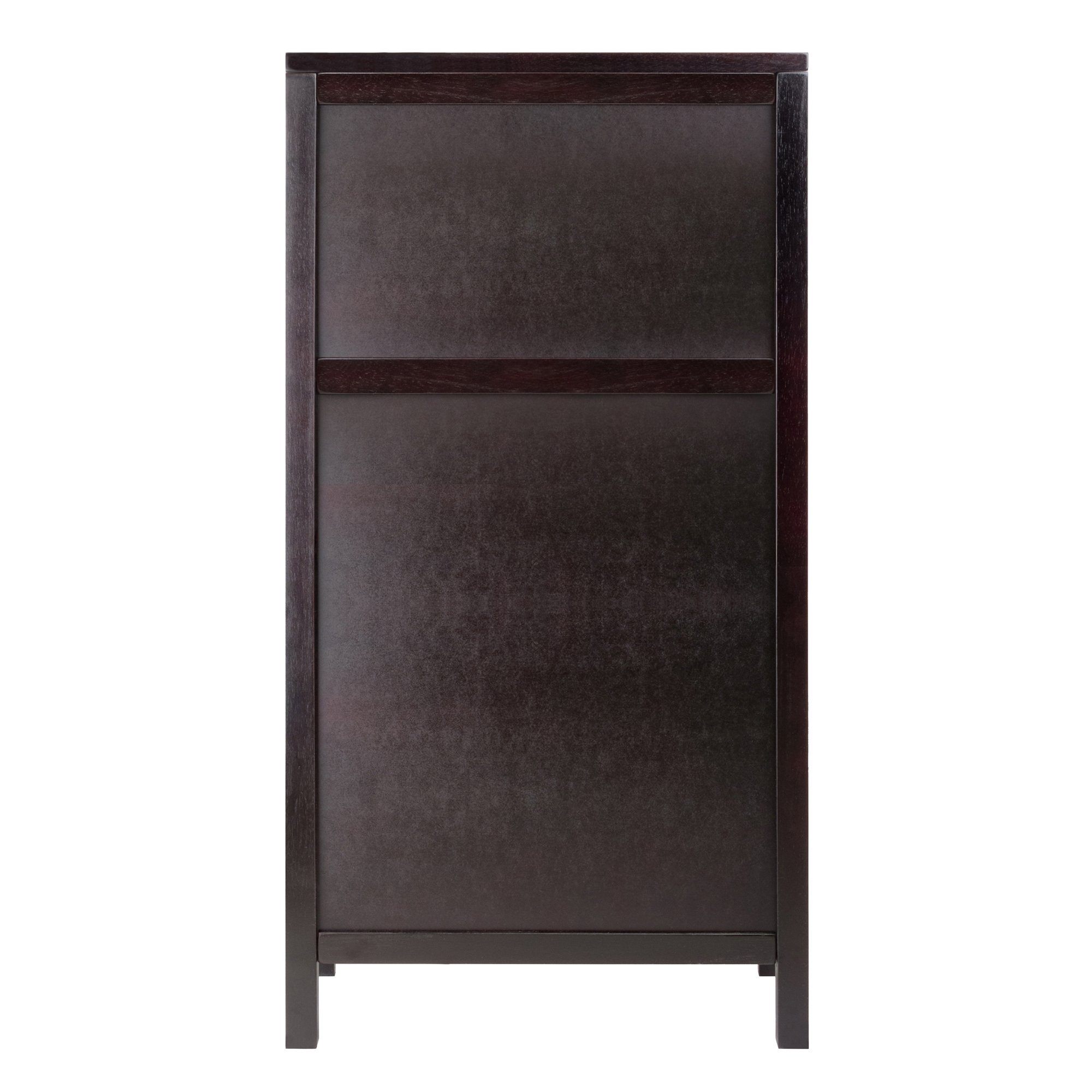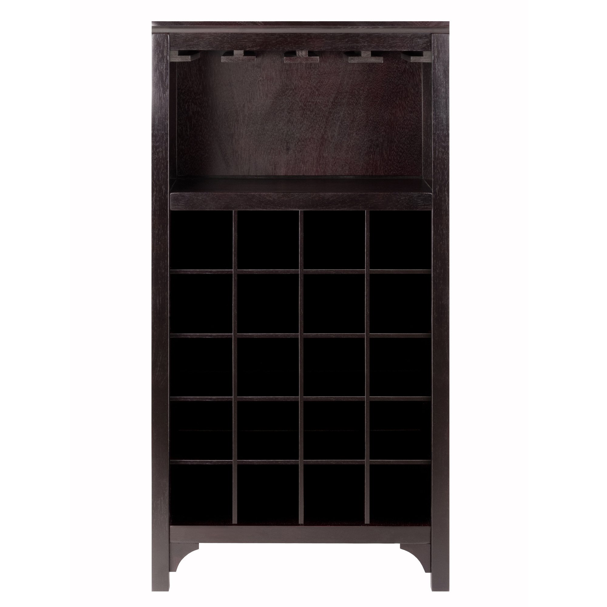 Add this compact Ancona Wine Modular unit to your home. Create a unique look with one unit or any combination of the three styles available. This unit has glass hanger and holds 20 bottles of wine. Overall assembled size is 19.009"W x 12.60"D x 37.52". Glass hanger inside clearance is 16.73"W x 11.06"D x 8.62"H. Made with combination of solid and composite wood in Dark Espresso Finish. Assembly Required.Overall size 19"W x 12.60"D x 37.52"H. Glass hanger inside clearance 16.73"W x 11.06"D x 8.62"H.Top surface area is 19"W x 12.60"D. Individual 20 wine slot is 4"W x 3.9"H x 11.1"D.Made with combination of solid and composite wood in Dark Espresso Finish. Assembly Required.nullnullnull This product meets the oversized requirement per UPS/FedEx. The shipping weight reflected is the dimensional weight. This product also meets the large package requirement per UPS/FedEx. The estimated shipping cost will include this fee. Large package is $70.00; applied when length plus girth [(2 x width) + (2 x height)] combined exceeds 130 inches. Additional Handling charge of $10.50 applied where a package's longest side exceeds 48 inches in length; the second longest side exceeds 30 inches in length; or total weight is greater than 70 lbs.This product meets the oversized requirement per UPS/FedEx. The shipping weight reflected is the dimensional weight. This product also meets the large package requirement per UPS/FedEx. The estimated shipping cost will include this fee. Large package is $70.00; applied when length plus girth [(2 x width) + (2 x height)] combined exceeds 130 inches. Additional Handling charge of $10.50 applied where a package's longest side exceeds 48 inches in length; the second longest side exceeds 30 inches in length; or total weight is greater than 70 lbs.