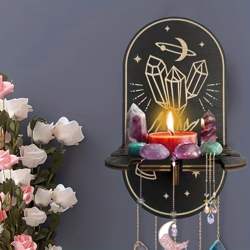 1pc Rustic Wooden Bat Crystal Floating Shelf - Wall Hanging Decorative Shelf Rack for Home, Living Room, Bedroom - Perfect for Halloween, Thanksgiving